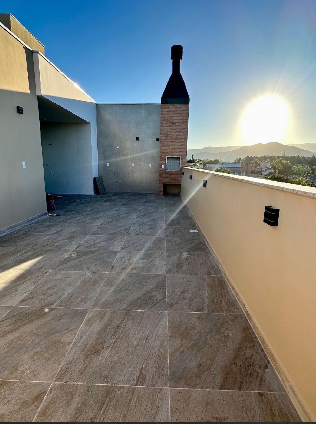 Possui 4 quartos sendo 2 suítes, sala de estar e jantar integradas, 3 banheiros, terraço com churrasqueira a carvão e vagas de garagem, persianas automatizadas, massa corrida, piso vinílico, sacada com reik.
