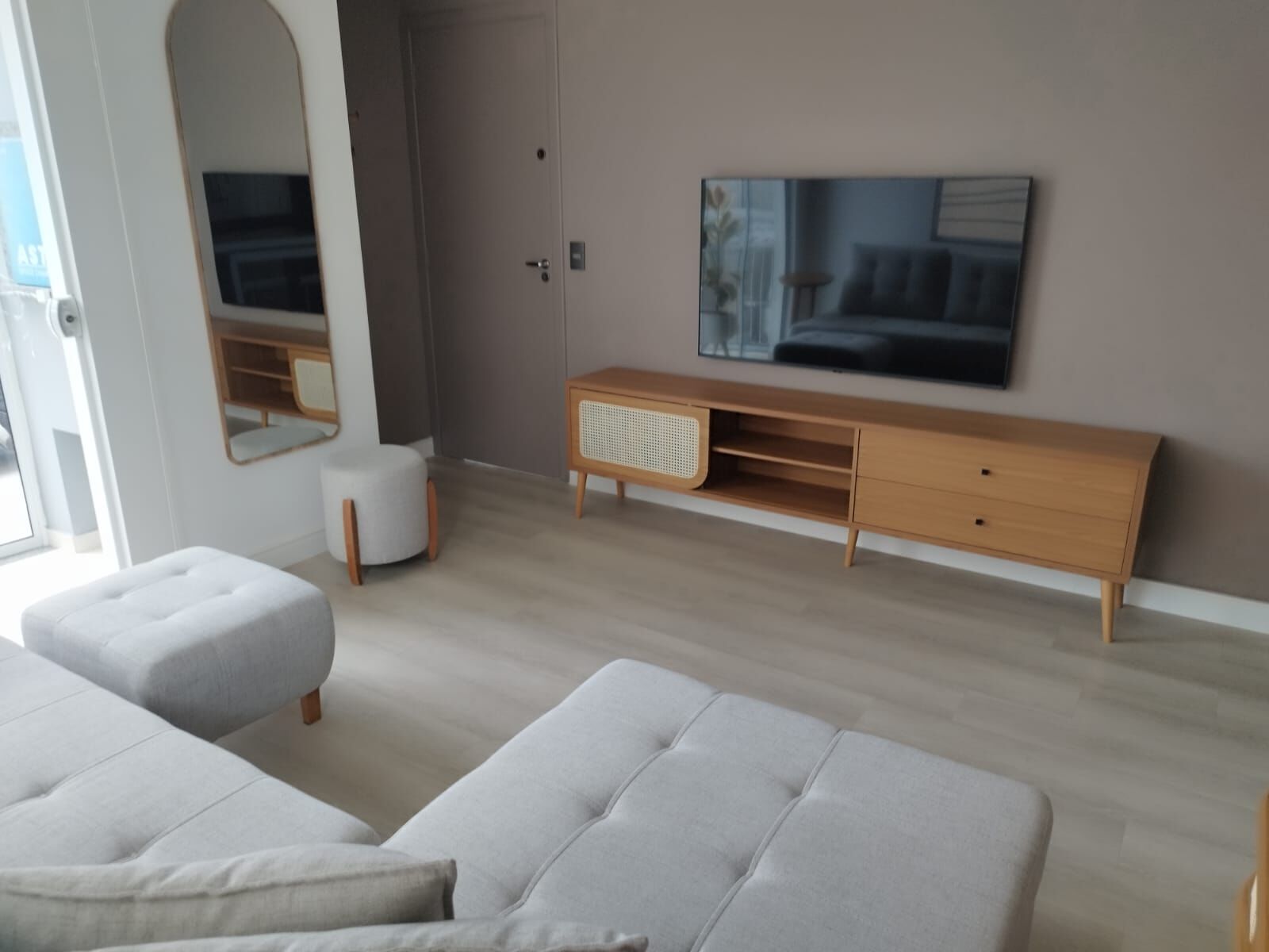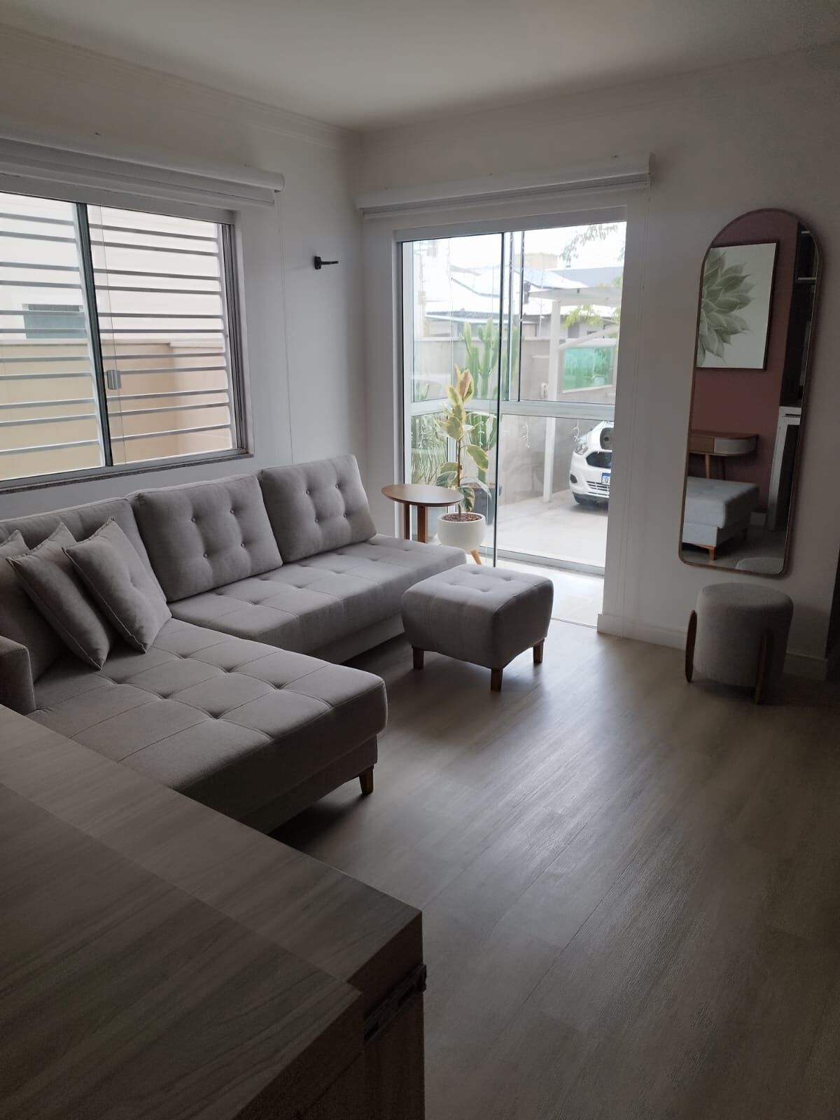 Apartamento térreo semi-mobiliado com 61m2, mais área privativa externa. Rua sem saída tranquila. Com sala integrada a cozinha e lavanderia, porta de sacada e janela na sala e porta na cozinha além da porta principal.